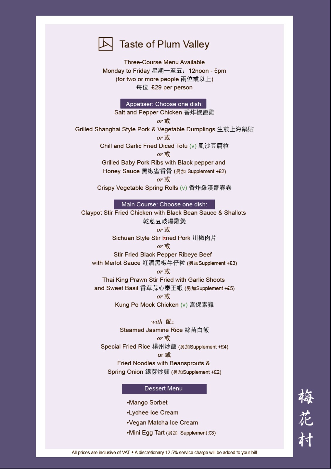 Our main menu, dinner dim sum menu, tailor-made vegetarian set menu and allergen menu are available up on request